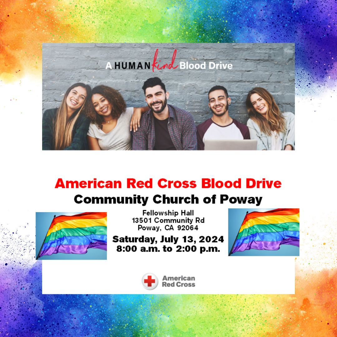 NEXT MONTH AT CCP a RedCross Blood Drive, for JULY 13th 8am-2pm!
